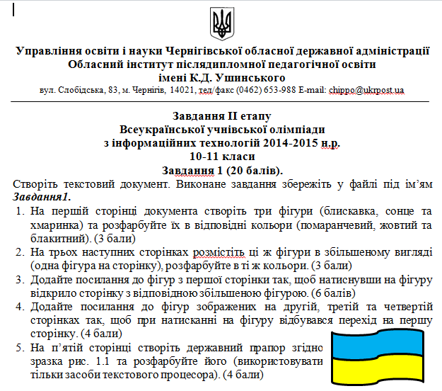 Завдання ІІ етапу Всеукраїнської олімпіади з ІТ 2014-2015 н.р. м.Чернігів