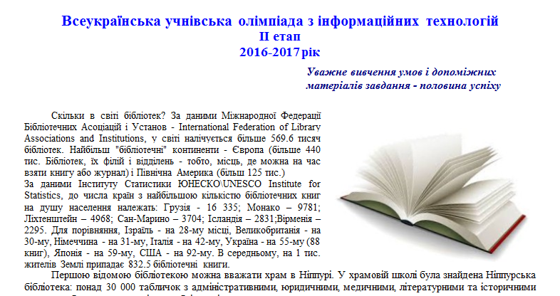 Завдання ІІ етапу Всеукраїнської олімпіади з ІТ 2016-2017 н.р. м.Київ