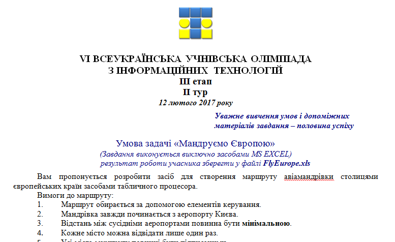 Завдання ІІІ етапу Всеукраїнської олімпіади з ІТ 2016-2017 н.р. м.Київ І і ІІ тур