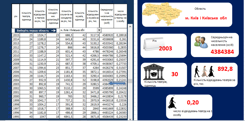 Студенту 2 курсу Чернігівського ліцею з посиленою військово-фізичною підготовкою Андрія Качури в середовищі Excel,