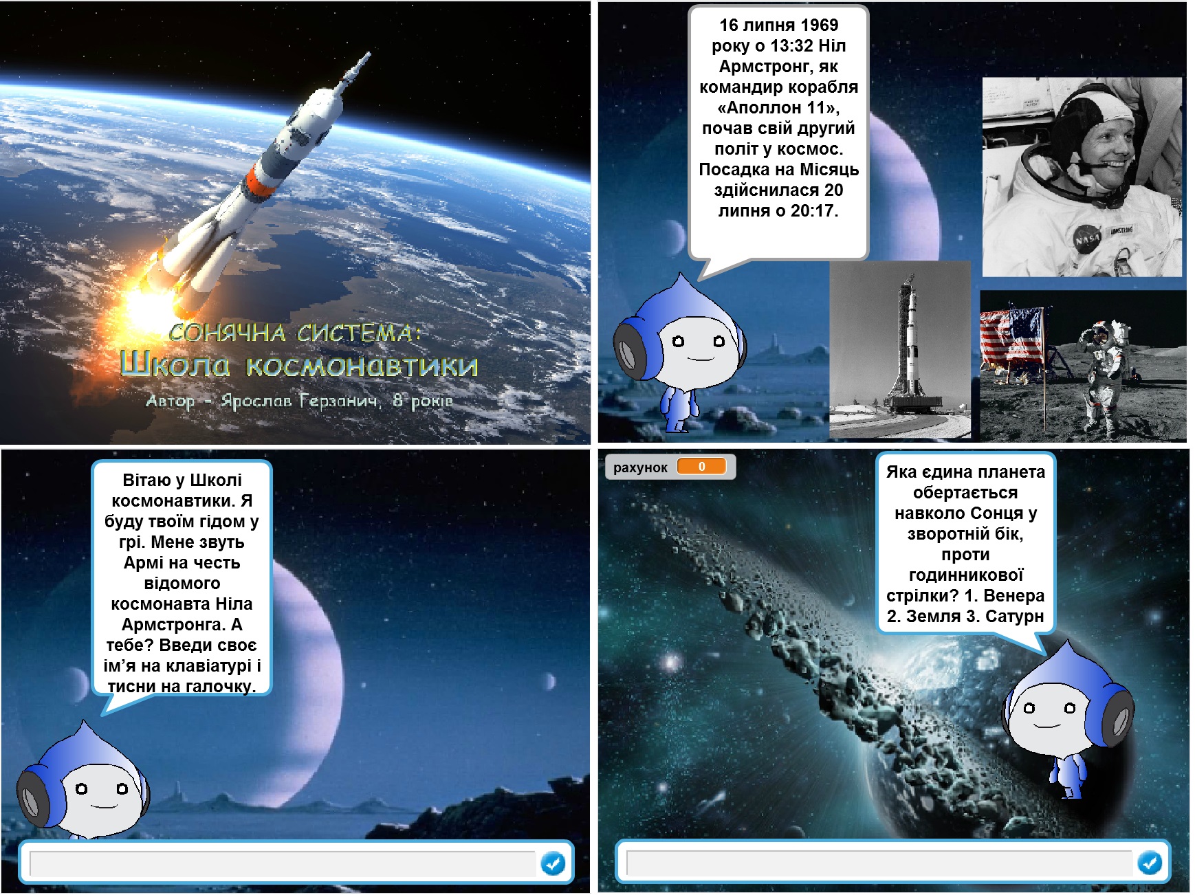 «Школа Космонавтики». Переможець ІІІ фестивалю Scrаtch-проектів у номінації «Навчаємося з Рудим Котом».