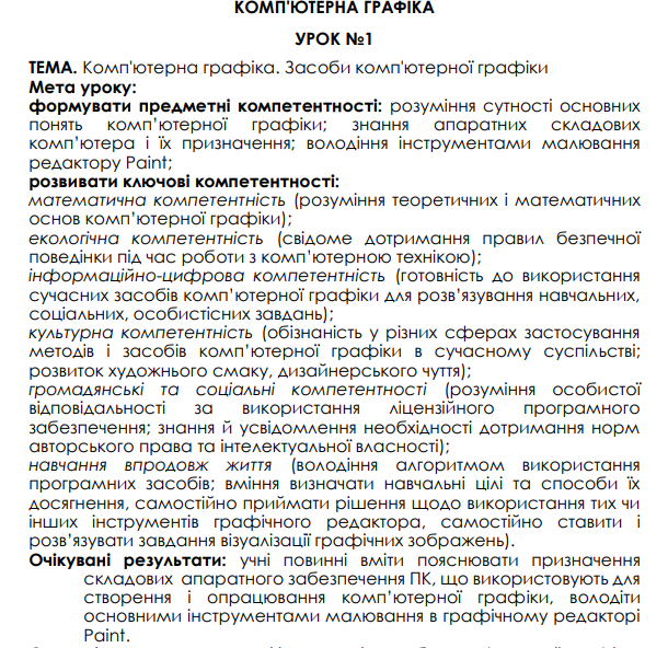 6 клас. Урок №1. Комп'ютерна графіка. Засоби комп'ютерної графіки