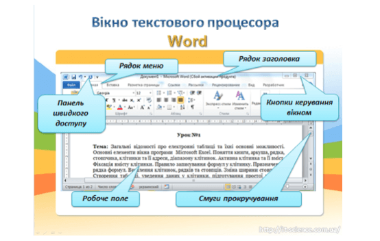- Об'єкти вікна текстового процесора Word? І їх призначення