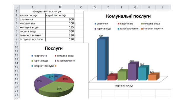 За зразком на малюнку створіть таблицю Комунальні послуги. Дані в стовпець Вартість послуг введіть згідно домашніх квитанцій.