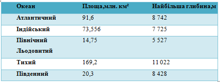 Створіть документ Океанисвіту.xls використавши наступні дані.