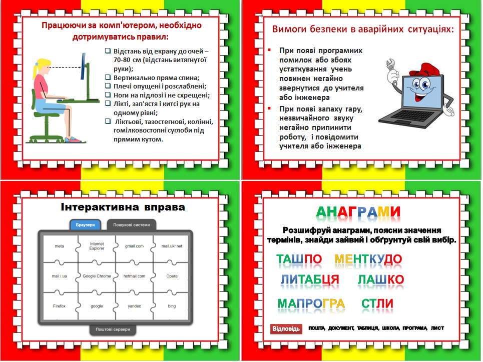 Урок 1. Правила ТБ при роботі за комп'ютером. Повторення.
