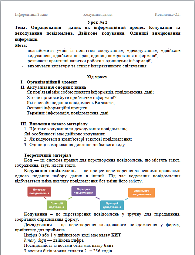 Урок 2. Опрацювання даних як інформаційний процес. Кодування та декодування повідомлень.