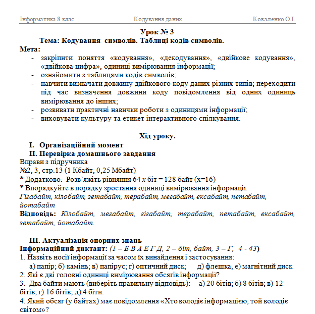 Урок 3. Кодування символів.Таблиці кодів символів.