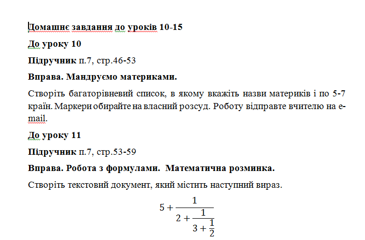 Домашня робота до уроків 10-15