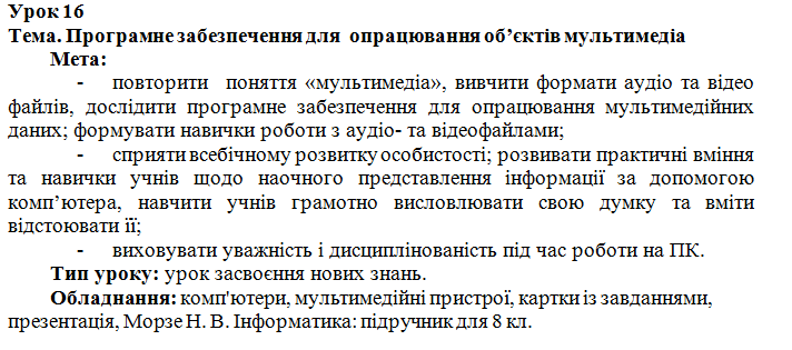 Урок 16. Програмне забезпечення для опрацювання об’єктів мультимедіа