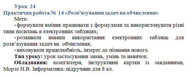 Урок 24 за підручником Бондаренка. Практична робота № 14 «Розв’язування задач на обчислення».