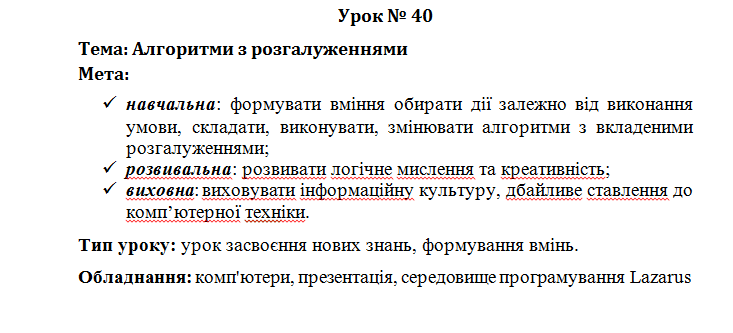 Урок 41. Алгоритми з розгалуженнями