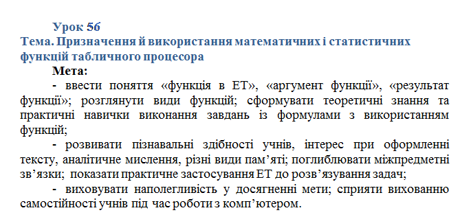 Урок 56. Призначення й використання математичних і статистичних функцій табличного процесора.