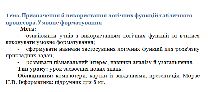 Урок 57. Призначення й використання логічних функцій табличного процесора. Умовне форматування