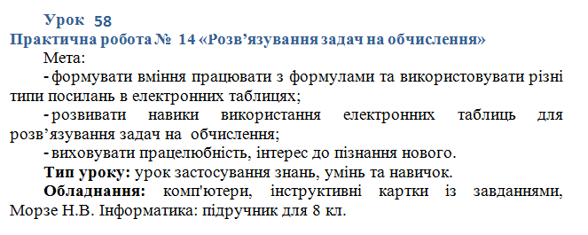 Урок 58 . Практична робота № 14 «Розв’язування задач на обчислення».