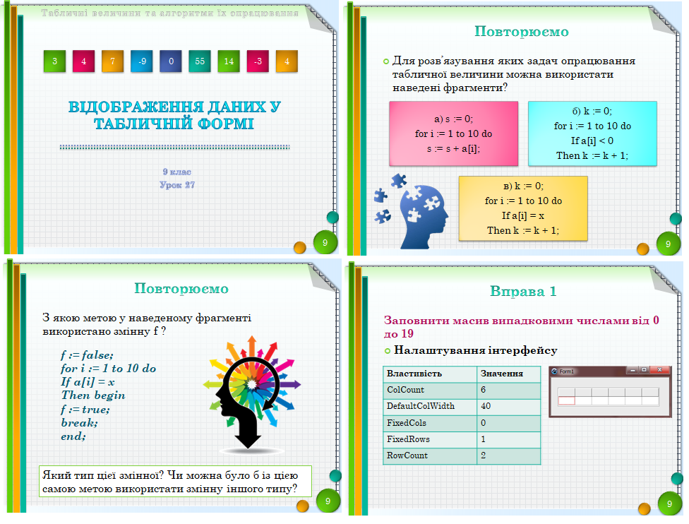 9 клас. Урок 27. Відображення даних у табличній формі