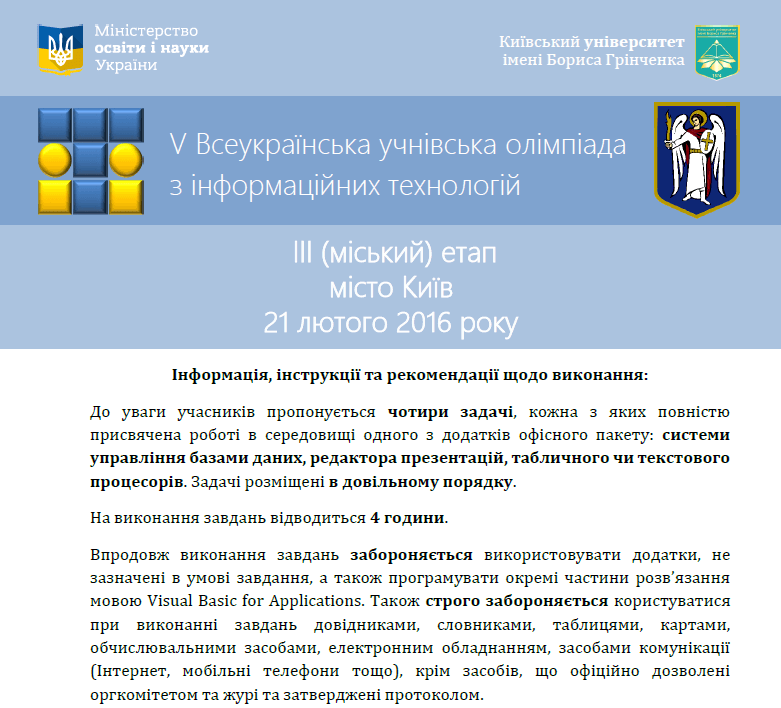 Завдання ІІІ етапу Всеукраїнської учнівської олімпіади з IT 2015-2016 н.р., м. Київ