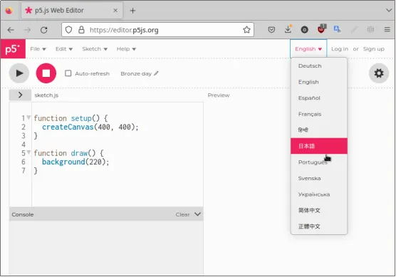 На сьогоднішній день P5.js перекладено українською мовою, хоча деякі повідомлення про помилки можуть виводитися на екран англійською мовою.